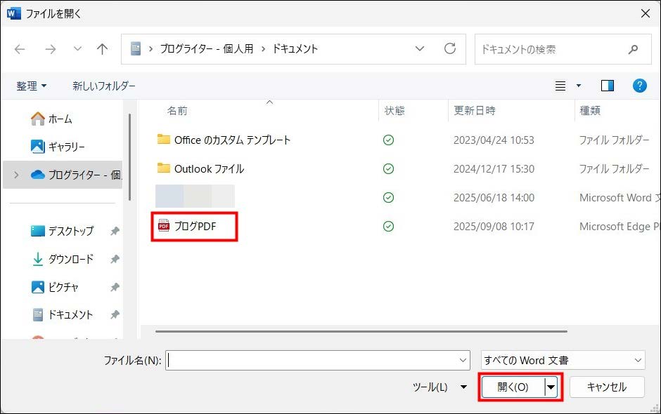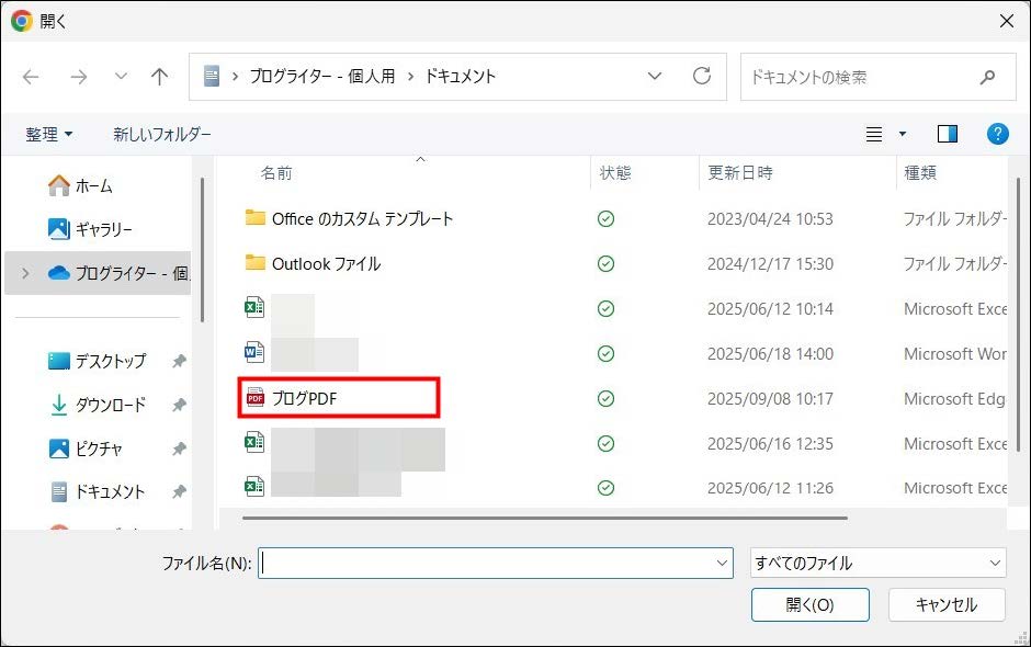 するとファイルを選択するウィンドウが表示されます。変換したいファイルを選択し「開く」をクリックしましょう。