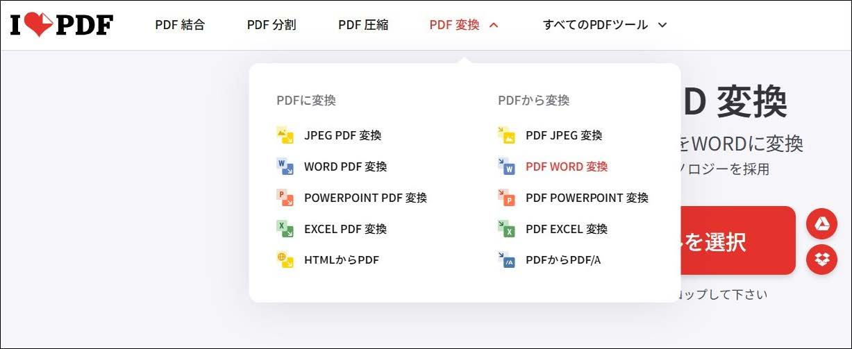 PDFを変換したいとき、基本的にはWordの機能を利用することを推奨しますが、何か不具合で上手く機能しなかったときの代替案として、以下のようなサイトを使うこともできます。