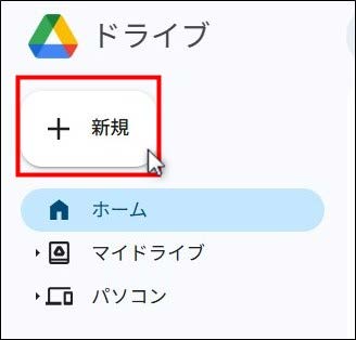 まず、GoogleドライブにPDFをアップロードします。Googleドライブホーム画面の左上にある「新規」からファイルをアップロードしましょう。