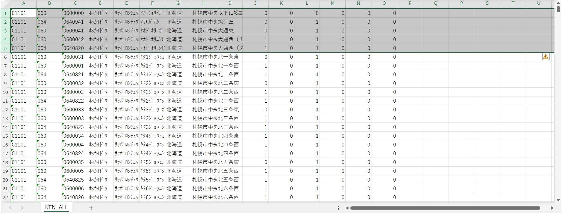 解除するときは、非表示にしている行(列)を挟んだ両脇の行(列)を選択します。