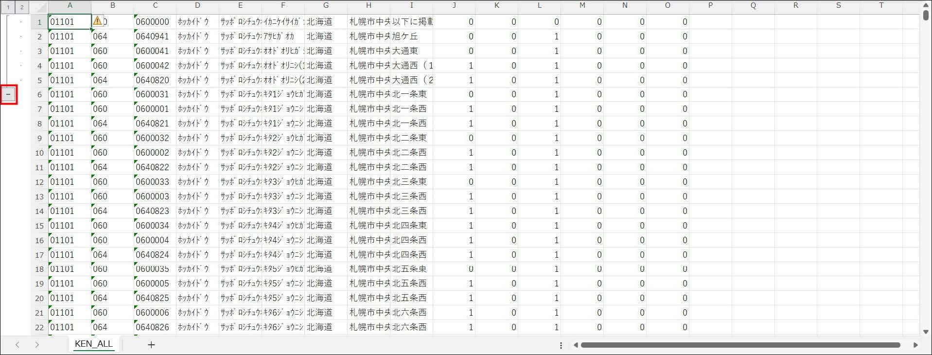 セルを非表示にするのならば、グループ化を活用することも有効です。