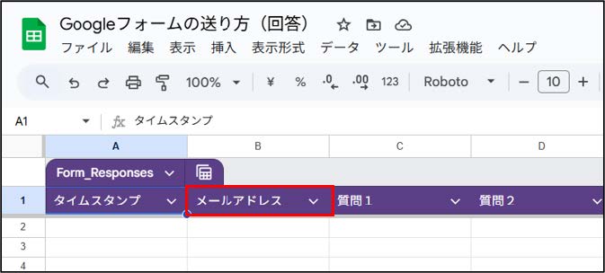このように複数のフォームの回答を1つのスプレッドシートで管理することが可能です。