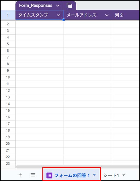 各フォームの回答はそれぞれ別のシートで振り分けられるため、データが混在する心配もありません。ただし、シート名は作成順にナンバリングされたものであるため、後から見て分かりやすいようにシート名を変更しておくことをおすすめします。