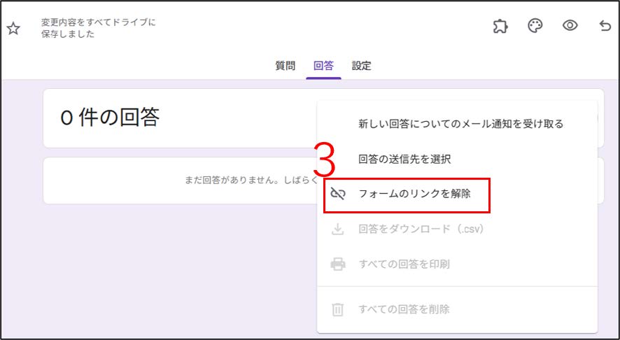 1.スプレッドシートとの連携を解除したいGoogleフォームを開き、「回答」を選択。