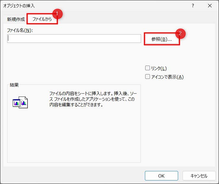 すると下図のようなウィンドウが表示されるので【ファイルから】→【参照】を選択しましょう。