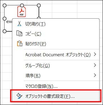 また、プロパティの設定を「セルに合わせて移動やサイズ変更をしない」にすることで、セルの大きさを変えてもPDFの配置が変わらないようにすることができます。