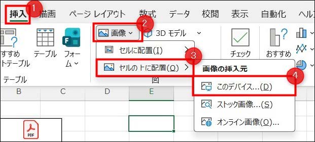 1ページ目さえ貼り付けられれば良かったり、リンクを貼り付けたいだけであれば、オブジェクトとして貼り付ける方法もあります。この方法ならExcel上に貼り付けたPDFをすぐに開くことができます。