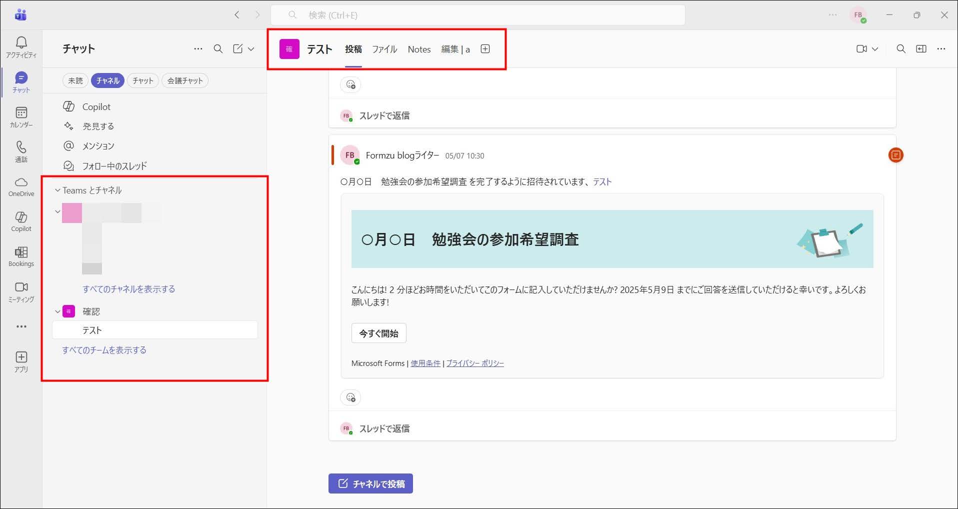 - チャネル:チーム内の話題ごと(例:総務・企画・資料置き場)